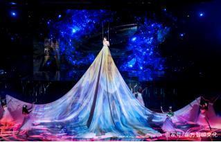 其实这个裙子与投影的搭配就是人们常说的舞美设计。它是戏剧等舞台演出的一个重要组成部分,包括布景、灯光、化妆、服装、道具等。随着时代的发展,数字媒体技术的进步,舞美有了更多元、更丰富的表现方式。舞美的作用也不仅仅是好看这么简单。